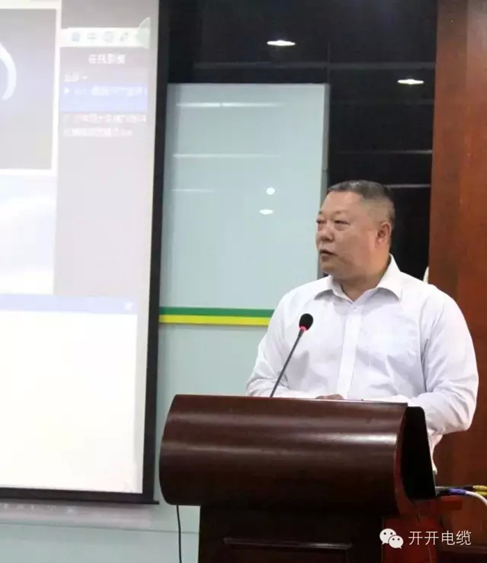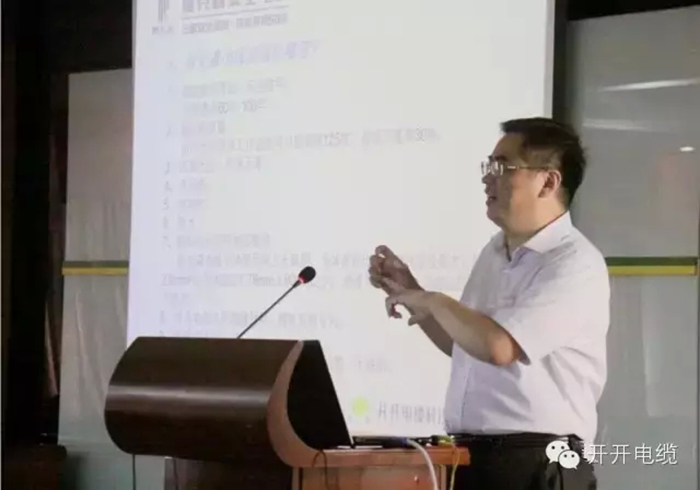 12日9點,開開電纜雷克森技術總工徐華勝為大家講解雷克森的產(chǎn)品知識。分析比較普通PVC電線、低煙無鹵電線、輻照交聯(lián)低煙無鹵電線的特點及絕緣層的差別;雷克森產(chǎn)品的誕生背景、產(chǎn)品結(jié)構與技術;雷克森產(chǎn)品壽命試驗講解、雷克森賣點講解等。