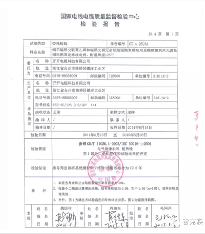 由浙江開開電纜科技有限公司榮譽(yù)出品的 雷克森安全電線絕緣采用雙層共擠,一次性設(shè)備擠出,并經(jīng)過能量不小于2.0MeV的電子加速器輻照交聯(lián),保證了雙層絕緣的同心度、完整度和粘合度。所以一般在民用建筑使用,使用環(huán)境和核電站工況相比,更加不易損壞和老化。經(jīng)過科學(xué)檢測,使用壽命在70年以上。
